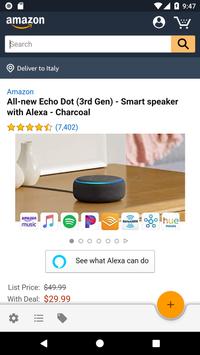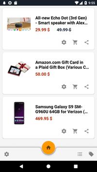 Search on Amazon and find the products you are interested in: you can buy directly from the app and get the best price available, or add them to the list of the items to be monitored.
