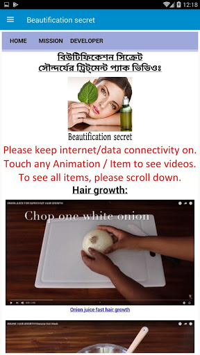 এই এপ্লিকেশনটিতে বিভিন্ন মিডিয়া/যোগাযোগ মাধ্যম প্রকাশিত Beautification secret বিষয়ক ভিডিও টিপ্‌স দেয়া হয়েছে। সবকিছুই Internet, facebook, YouTube, বই-পুস্তক থেকেই প্রাপ্ত ।