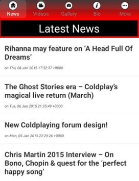 An App for Coldplay Fans Features: News Videos Photos Access to social media feeds(Facebook and Twitter)