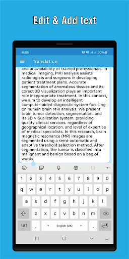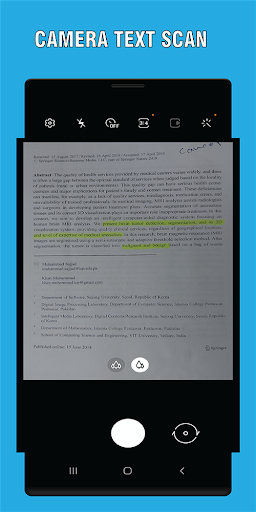 เครื่องสแกน Text OCR คือการสแกนข้อความในรูปภาพและแปลงเป็นข้อความที่แก้ไขได้ซึ่งผู้ใช้สามารถแยกข้อความจากภาพที่ถ่ายโดยกล้องหรือเลือกแกลเลอรี่โทรศัพท์แบบฟอร์มและแปลเป็นหลายภาษา เครื่องสแกนข้อความ OCR แปลงข้อความที่สแกนเพื่อแก้ไขและแปลข้อความคัดลอกและแชร์ คุณสามารถแปลข้อความที่สแกนเป็นภาษาที่ต้องการได้หลายภาษา ผู้ใช้สามารถเปลี่ยนข้อความที่สแกนเป็นคำพูดและอ่านข้อความจากภาพด้วยการแปลง TTS (ข้อความเป็นคำพูด) เพียงแค่นั่งลงและฟังข้อความข้อมูลที่คุณต้องการ เครื่องสแกนข้อความ OCR นี้มีเครื่องมือที่มีความแม่นยำสูงซึ่งสแกนข้อความในรูปภาพด้วยความแม่นยำ 100 ภาพไม่ว่าจะเป็นภาพที่เบลอหรือในโหมดมืด - นี่คือแอปพลิเคชันสแกนเนอร์ที่รวดเร็วและข้อความและนักแปลที่จะสแกนข้อความที่สามารถใช้งานได้ในภายหลัง โดยการส่งผ่านอีเมลออกเสียงแบ่งปันบนโซเชียลมีเดียหรือคุณสามารถคัดลอกข้อความในคลิปบอร์ดเพื่อใช้ในภายหลังในแอพอื่น ๆ ในอุปกรณ์ของคุณ