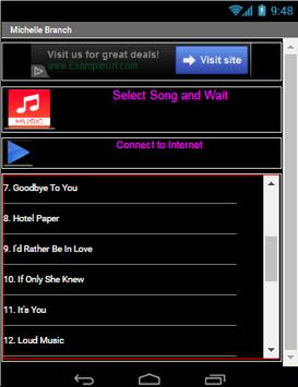 This is a streaming online music app who content of full song of MICHELLE BRANCH. In this application user doesn't allow to download mp3, just hearing the song by online streaming