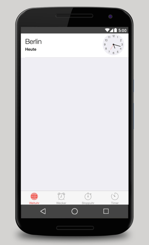 Du möchtest schon lange die iOS 8 Clock auf deinem Android Handy benutzen? Du findest die iOS 8 Clock flach und schön designed? - Das Warten hat ein Ende! Mit der neuen iOS 8 Clock steht dem iPhone Feeling nichts mehr im Wege. Ein kurzer Einklang, warum iOS so beliebt ist: "Nichts, was wir je gemacht haben, sollte einfach nur schön aussehen. Denn das würde bedeuten, die Sache falsch herum anzugehen. Stattdessen ging es uns bei der Überarbeitung von iOS darum, etwas zu schaffen, das viel einfacher, nützlicher und besser ist – und trotzdem auf dem aufbaut, was die Leute an iOS lieben. So hat am Ende die Überarbeitung der Funktionsweise zum neuen Design geführt. Denn Design ist nur dann gut, wenn es auch gut zu benutzen ist. Einfachheit wird oft mit Minimalismus gleichgesetzt. Doch Einfachheit ist viel mehr, als auf unnötige Funktionen oder überflüssigen Schnickschnack zu verzichten. Es geht darum, dass du die richtigen Dinge an der richtigen Stelle hast, wenn du sie brauchst. Es geht darum, Ordnung in ein komplexes System zu bringen. Und es geht darum, etwas zu schaffen, das einfach immer und überall funktioniert. Wenn du etwas zum ersten Mal in die Hand nimmst und trotzdem gleich weißt, wie es zu bedienen ist – das ist Einfachheit. Für uns ist der Nutzen einer Sache immer das Wichtigste. Wir fügen Features nicht einfach hinzu, weil wir es können oder weil es technologisch möglich ist. Wir integrieren neue Features nur dann, wenn sie wirklich nützlich sind. Und nur so, wie es wirklich sinnvoll ist. Das neue Kontrollzentrum in iOS 8 ist ein gutes Beispiel dafür. Mit einmal Streichen ist alles da, was du oft schnell erledigen willst.[...]" Erhalte nun all dies auf deinem Android Smartphone - es ist nur einen klick entfernt. Nichts wird dich davon abhalten, denn es ist kostenlos. WILLKOMMEN IN EINER NEUEN DIMENSION - IN MEHREREN UM GENAU ZU SEIN. Designed by FPF Inventions Ltd. Diese App befindet sich noch im Alpha Stadium - Es kann sein, dass auf machen Mobilen High End Geräten das User Interface noch nicht funktioniert. Wir arbeiten an der Verbesserung. iOS and all iOS Logos and texts are trademarks of apple inc.