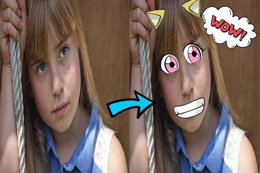 Take a picture or choose one from your gallery , and choose the best effects and special stickers to turn your picture into an amazing brilliant nicest famous anime manga character ( ex : naruto stickers,or madara mask) , choose a face , eyes , add some redness to your checks , add some stickers , and make a comic amazing anime manga character of yourself .