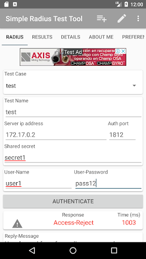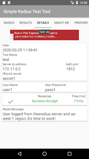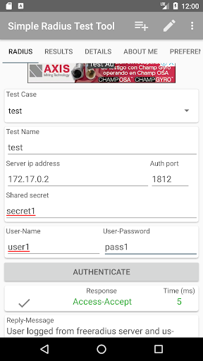 เครื่องมือขนาดเล็กที่สร้างขึ้นเพื่อทดสอบ RADIUS Server จากอุปกรณ์ Android
