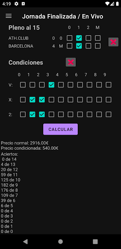- Quinieras ปรับอากาศยังง่ายและหลากหลาย - ติดตามการถ่ายทอดสดในผลของ Quiniela - เมื่อวันนี้เสร็จสิ้นคุณจะรู้ว่าจำนวนความสำเร็จของแต่ละหมวดหมู่ที่สอดคล้องกับ คิดค่าใช้จ่ายโดยไม่ต้องรอเพื่อตรวจสอบตั๋วในวันถัดไป