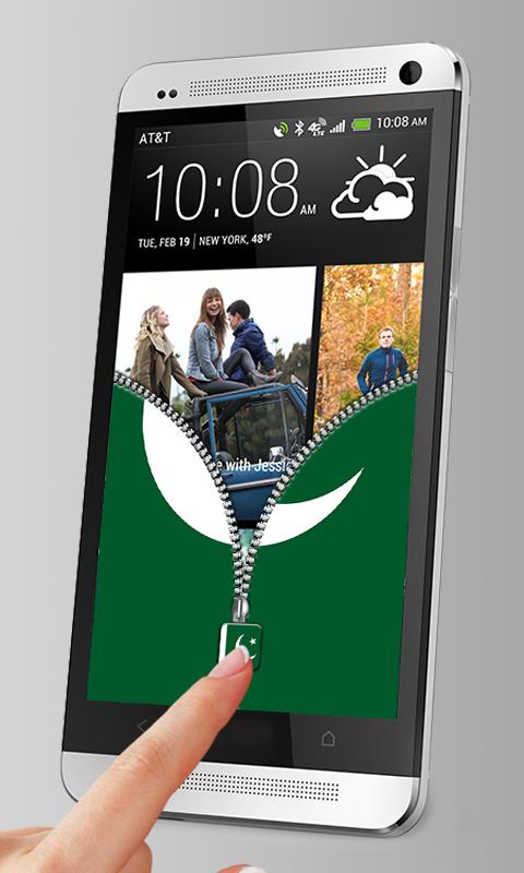 Flag Zipper Screen Lock. Its a flag zipper theme lock screen. You can zip unzip the lock screen. A pure Pakistan Theme Lock. On activating this screen lock , your mobile screen will be secured with a screen lock with a zip. To open the screen just zip down the Pakistan flag zipper.