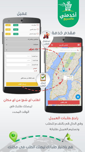 حمل تطبيق اخدمني عالسريع للسائق وسجل بياناتك واعمل معنا مقدم خدمة توصيل طلبات للمنازل معنا راح تحصل علي دخل اضافي ممتاز من خلال شراء طلبات العملاء وتوصيلها لهم لباب الدار لتتقاضي عن ذلك قيمه توصيل الطلب المحدده ببيانات الطلب وكمان معانا راح تحصل علي نقاط عن كل طلب هتنفذه للعملاء وكمان ليك كود خاص لدعوة الأصدقاء سواء دعيت مقدم خدمه أو عميل هتجمع من خلاله نقاط ستضاف لرصيدك لدينا وكمان كوبونات للميزين حسب تقييم العملاء لهم