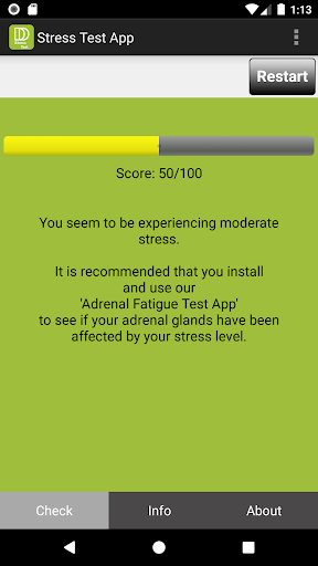 แอพอื่น ๆ ในซีรีส์ช่วยให้คุณสามารถตรวจสอบความเป็นอยู่ที่ดีของต่อมหมวกไตของคุณ (แอปทดสอบความเหนื่อยล้าต่อมหมวกไต) และคุณอาจจะมุ่งหน้าไปที่ความเหนื่อยหน่าย (แอปทดสอบต่อมหมวกไต)