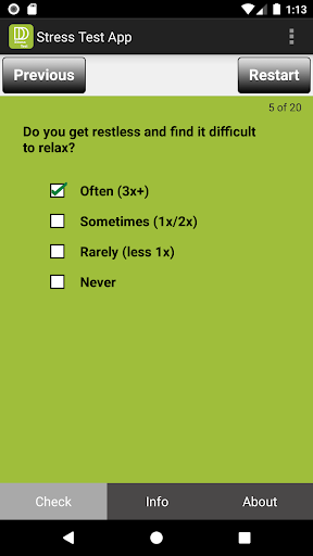 แอพทดสอบความเครียดเป็นส่วนหนึ่งของ 'ความเครียดของน้ำพุในซีรีย์ในซีรีย์ของเมืองซึ่งช่วยให้คุณกำหนดระดับความเครียดที่คุณอาจประสบอยู่ในปัจจุบัน ความเครียดเป็นเวลานานอาจมีผลกระทบทางสรีรวิทยาและอารมณ์ระยะยาวที่ร้ายแรงซึ่งหากไม่ได้รับการแก้ไขอาจส่งผลกระทบต่อความเป็นอยู่ที่ดีและวิถีชีวิตของคุณ