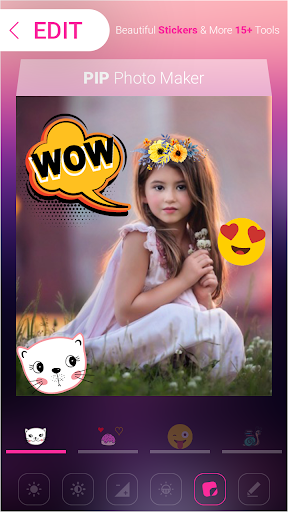 Pip photo maker is a fun app for photo enhancement that gives amazing abilities to edit your photos with variety of options: photo editor,filters, stickers, things, displays, effects.