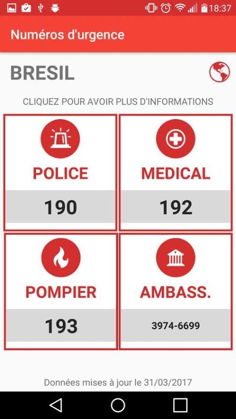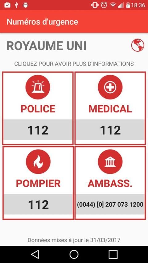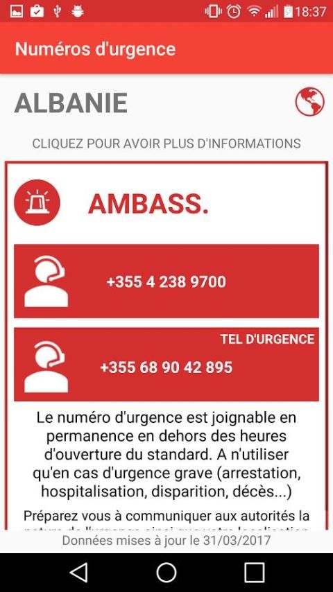 Clicking the font icon, medical emergencies, fire or embassy you will have if any additional information on the number.