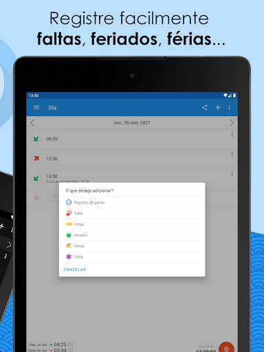 ด้วยมันง่ายในการลงทะเบียน Dots ในแต่ละวันและลงทะเบียนได้อย่างง่ายดาย ความผิดพลาดวันหยุดวันหยุดและ / หรือการเปิดตัวพิเศษ (เช่นค่าใช้จ่ายเพิ่มเติมหรือการทำงานล่วงเวลาชนะ) ดังนั้นรักษาสมดุลของธนาคารชั่วโมงที่ซิงโครไนซ์กับจริงทั้งหมด