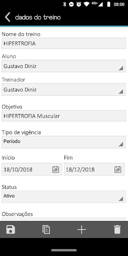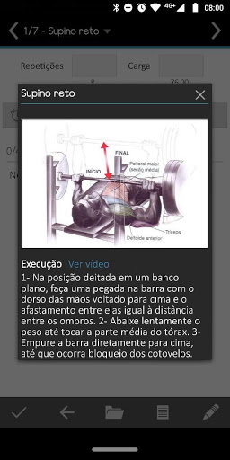 - Execução de treinos (coletar dados de séries e repetições realizadas, controlar o tempo de descanso entre as séries e visualizar forma de execução do exercício);