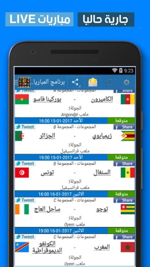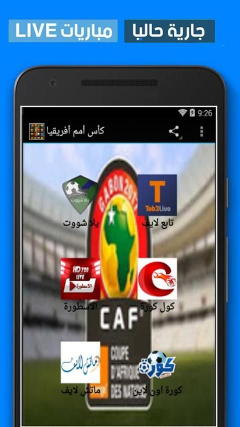 9Apps provide lots of India android apps. 20,000+ users downloaded كأس أمم آفريقيا -البث المباشر- latest version on 9Apps for free every week! This indicates many people like this application. This hot app was released on 2017-01-29. Just use it when absolutely necessary.