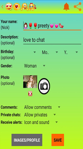 In this App, You can meet new friends and have fun totally Free. You can Send pictures, set profile pics, insert pics in gallery, comment on DPs, Like someone's pics, make new friends, chat privately, chat anonymously.