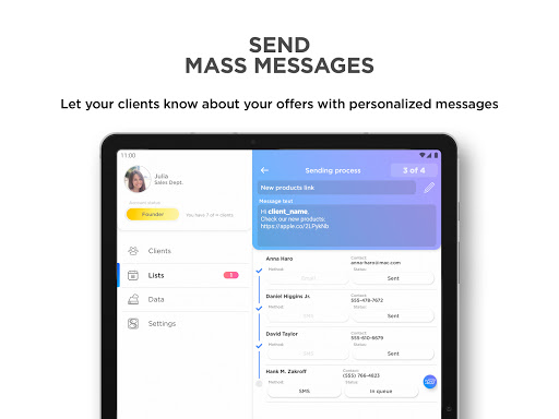 แอปไคลเอนต์ให้วิธีการใหม่ในการโต้ตอบกับลูกค้าของคุณ ดำเนินการจากระยะไกลไม่ว่าคุณจะพบตัวเอง - การประชุมภายนอกบนท้องถนนที่บ้าน จดบันทึกนำเข้าผู้ติดต่อเพิ่มการเตือนส่งอีเมลและ SMS โทรติดต่อลูกค้าของคุณจากแอปลูกค้า