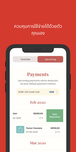 คุณจะเห็นรายการสั่งซื้อและจำนวนเงินที่ต้องชำระทั้งหมด ชำระเงินคืนล่วงหน้าได้โดยไม่มีค่าธรรมเนียมเพิ่มเติม