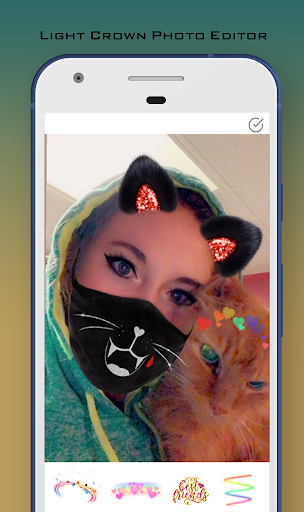 Crown light neon stickers are simple to add: Take a pic or choose one from the gallery, then select your favorite light crown/cat sticker or dog sticker/flowers crown, place them in your photo & done.