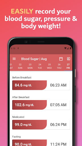 Simple Blood Diary helps you to easily keep track of your blood sugar, pressure & body weight!