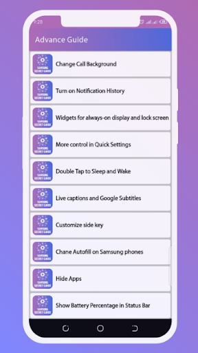 Samsung Secret Guide รวมถึงคุณสมบัติที่ซ่อนของ Android ของ Samsung จุดประสงค์ของแอพนี้คือคนที่รู้ว่าวิธีการใช้งานมากกว่าอุปกรณ์อย่างสมบูรณ์แบบด้วยฟังก์ชันการทำงานเต็มรูปแบบ เราเห็นว่าประชาชนดังกล่าวไม่ใช้อุปกรณ์ของพวกเขาอย่างถูกต้องและมีข้อผิดพลาดในการตั้งค่าอุปกรณ์ เราแก้ปัญหานี้ ผู้คนได้เรียนรู้ฟังก์ชั่นทั้งหมดของอุปกรณ์ของพวกเขาและทำให้ง่ายและสะดวกสบาย