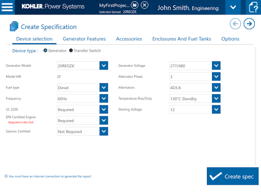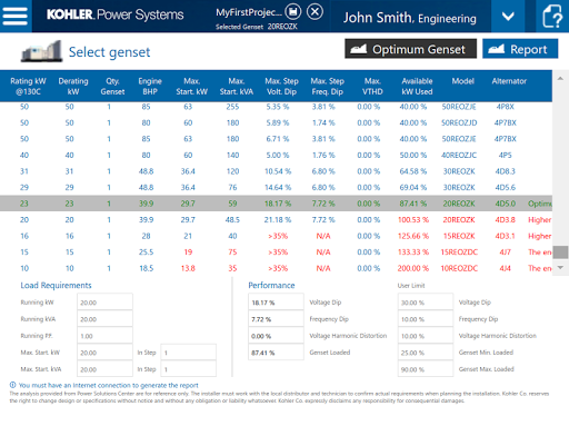 Industrial generator sizing , application tools and specification software.
