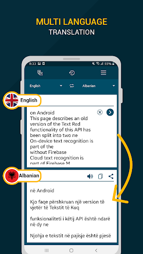 คุณต้องการที่จะได้รับการแปลภาษาใด ๆ ภายในไม่กี่วินาที? แอปนักแปลกล้องช่วยให้คุณแปลรูปภาพของคุณโดยตรงจากแกลเลอรี่หรือถ่ายภาพจากกล้องและแปลเป็นภาษาใด ๆ และคุณจะแปลงรูปภาพเป็นข้อความ - แอปพลิเคชัน Photo Translator มีคุณสมบัติมากมายที่ช่วยให้คุณสามารถแปลรูปภาพใด ๆ โดยใช้กล้องโดยไม่จำเป็นต้องเขียน นักแปลกล้องยังรองรับการจดจำเสียงหมายความว่าคุณสามารถป้อนข้อความได้มากกว่า 70 ภาษาผ่านการพูดเพียงแค่ 70 ภาษา คุณไม่จำเป็นต้องพิมพ์ข้อความ - แอป Image Translator เป็นเครื่องมือที่ดีที่สุดในการแปลรูปภาพหรือข้อความ แอปพลิเคชั่น Photo Translator มีประโยชน์สำหรับนักท่องเที่ยวเพื่อเดินทางไปยังสถานที่หรือประเทศใด ๆ ของโลกและยังให้เสียงสำหรับข้อความแปลข้อความ