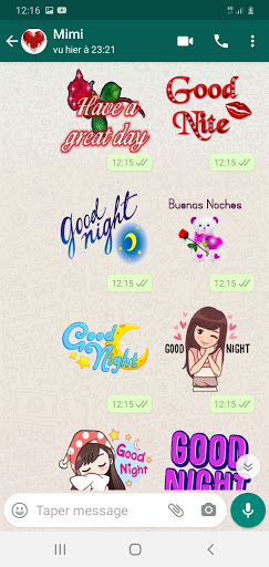 สติกเกอร์คืนที่ดีสำหรับ Whatsapp หวังว่าใครบางคนเป็นพิเศษราตรีสวัสดิ์และความฝันอันแสนหวานด้วยสติ๊กเกอร์ค่ำคืนที่น่ารักสำหรับคนที่น่ารักสำหรับคนไร้สาระ ส่งคนที่คุณรักหรือดูแลความปรารถนาดีคืนที่ดี พวกเขาเข้านอนจำความหวานของคุณ เรามีสติกเกอร์ "ราตรีสวัสดิ์และสติ๊กเกอร์สวัสดีทุกชนิดสำหรับคุณที่จะส่งคนที่คุณรักเพื่อนของคุณจะเพลิดเพลินกับข้อความของคุณ คุณจะไม่เบื่อกับการแชทข้อความแบบไร้เดิมพันเมื่อคุณมีอิโมติคอนมากมายให้เลือก stylize แมวที่ร้อนแรงของคุณด้วยคอลเลกชันที่ยอดเยี่ยมนี้