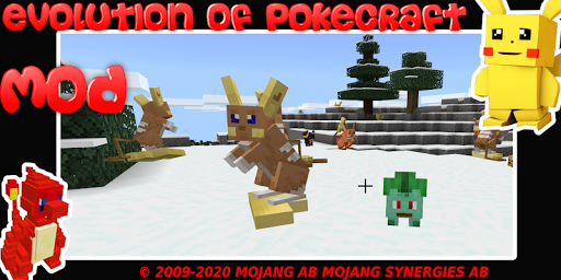 Evolution of pokecraft mod will add each pet with a unique voice acting. Explore biomes during daylight hours, get hold of poke balls and meet different inhabitants of icy, forest and other lands. Beware of big mobs and protect small heroes. Become a superhero with a huge number of colorful unique monsters. Over ten unique and inimitable little superheroes. In the test mode with a user-friendly interface, get to know all the residents.