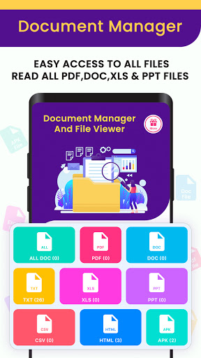 Document Manager and Viewer เป็นโซลูชัน Office ฟรีที่ให้การดูเอกสาร Office ได้อย่างง่ายดายเช่น Word, Excel, Slide, Text และ PDF ในที่เดียว คุณสามารถอ่านได้ทุกที่ทุกเวลา - แม้แต่ออฟไลน์ นี่เป็นแอพที่ง่ายและใช้งานง่ายมาก รับรายการเอกสารทั้งหมดที่มีอยู่ในสมาร์ทโฟนของคุณในที่เดียว