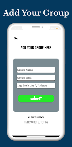 หากคุณเป็นผู้ดูแลระบบกลุ่มใน WA ของกลุ่มใด ๆ และต้องการแบ่งปันกลุ่มของคุณเชิญลิงค์กับเราคุณสามารถทำได้ในขั้นตอนง่ายๆ คุณได้รับตัวเลือก "เพิ่มกลุ่มของคุณที่นี่" หลังจากคลิกที่ตัวเลือกนี้คุณสามารถเพิ่มกลุ่มในแอพนี้ได้ คุณต้องให้หรือส่งชื่อกลุ่มเลือกหมวดหมู่และลิงค์เชิญกลุ่มกับรหัสอุปกรณ์