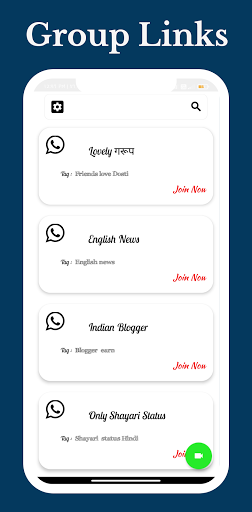 เป็นอันดับแรกของทั้งหมดที่คุณเห็นกลุ่ม Whats ล่าสุดพร้อมกับแท็กที่เกี่ยวข้องในหน้าจอโฮมแอปเพียงคลิกที่กลุ่มใด ๆ และรีบคุณเข้าร่วมขอแสดงความยินดี เราเพิ่มลิงค์กลุ่มใหม่ให้กับแอปเป็นประจำทุกวัน ดังนั้นคุณจะได้รับกลุ่มใหม่มากขึ้นและเลือกกลุ่มที่ดีที่สุดตามความต้องการของคุณด้วยค่าใช้จ่ายฟรี