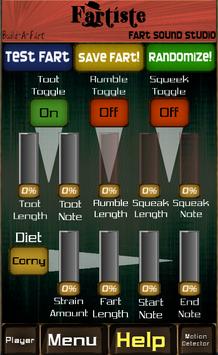 With BUILD-A-FART, you can CREATE, SAVE, and PLAY the WILDEST, FUNNIEST, and most DISGUSTING fart sounds ever imagined. The farts possible with this app is UNLIMITED because you can make and play as many farts as your inner-fartiste can dream of. Make farts that SQUEEK, RUMBLE, TOOT, or ALL THREE, even change the DIET that inspires your fart. What's more, every fart you create will be added to the fart soundboard and can be used with the fart motion detector and time-bomb!