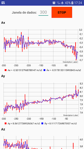 Ferramenta que mostra gráficos das medidas de aceleração e velocidade angular nos três eixos.