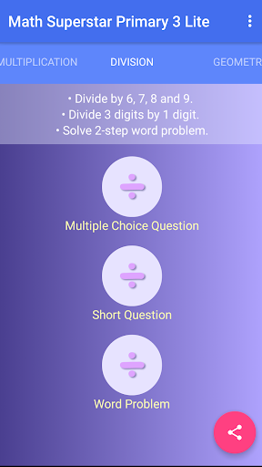 Math Superstar Primary 3 Lite, free version of Math Superstar Primary 3, gives you quick and easy Maths practices.
