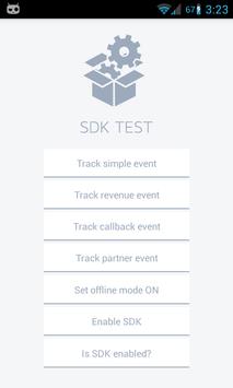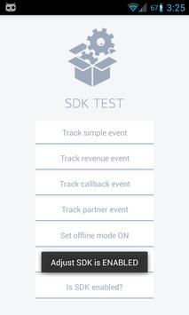 This app is using adjust Android SDK v4.0.9 in the sandbox environment and with verbose logging. Event buffering is turned off. While testing, you can check LogCat output if you filter your device logs with tags "Adjust" and "SDKTest".