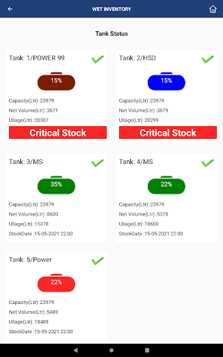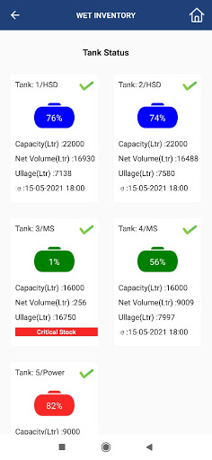 - หน้าสถานะการตรวจสอบถัง & ปั๊ม