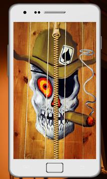 A Beautifull Skull Zipper Screen Lock. Skull Zipper Screen lock is really a Zipper screen bolt and is made for the individuals who are very low concerned with the high security for their telephone as it is extremely easy to use and does not oblige pass code to open. You simply need to drag down the skull. Kids would particularly cherish the distinctive and wonderful Skull foundation and would love use this Zipper