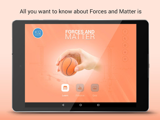 เรียนรู้ - ส่วนนี้ของแอปอธิบายกระบวนการโดยรวมของ กองกำลังสสารและแรงกดดันด้วยภาพเคลื่อนไหว 3D สร้างสรรค์