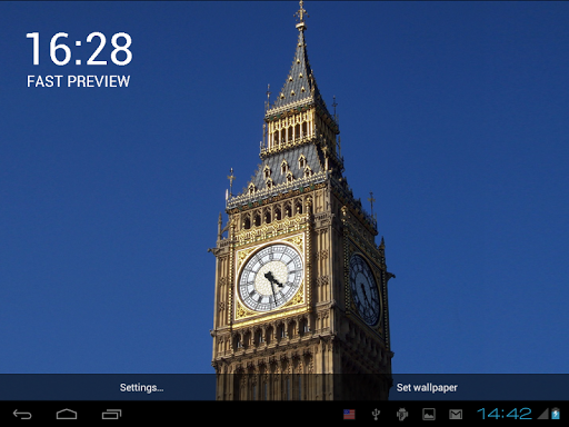 เรายินดีที่จะนำเสนอให้คุณโปรแกรมรักษาหน้าจอสดที่แสดงหอคอยนาฬิกานาฬิกาจะแสดงเวลาปัจจุบันและคุณสามารถรู้สึกเหมือนกับลอนดอนเป็นเพียงก้าวออกไป