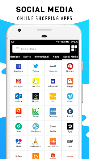 This All In One App Shopping App includes all popular shopping websites in India including amazon App, flipkart App, shopclues App, AJIO App, Tata Cliq App, snapdeal App, Paytm App, myntra, Shein App.