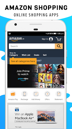 You can use this All In One App Shopping App for various kinds of purposes like Online Shopping, Bill Payments, Hotel Booking, Recharges, Food & Grocery Ordering, Booking Flight Tickets, Booking Movie Tickets and much more.