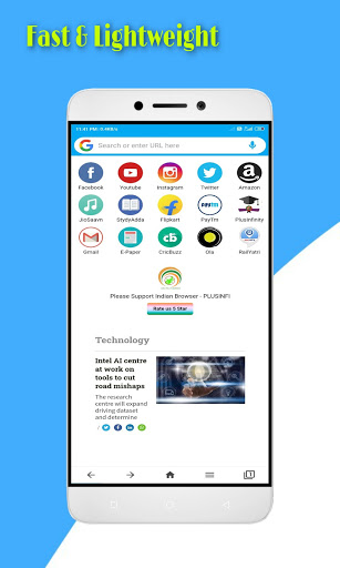 PlusInfi Indian Browser Fast & Lightweight with fast download & high speed browsing.