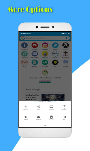 PlusInfi Indian Browser is a Made in india app. This browser gives you very fast download & high speed browsing experience. You can use it by opening many times tabs in PlusInfi Indian Browser. This app easily access Websites, Easy to play Videos, Fast Searching speed & all Social Networking Sites. This browser makes everything easily available to everyone.