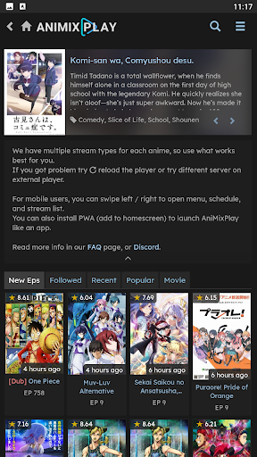 AnimiXPlay เป็นแอพพลิเคชั่นอะนิเมะครั้งแรกและครั้งเดียวที่ช่วยให้คุณดูอะนิเมะออนไลน์AnimiXPlay เป็นแอพสตรีมมิ่งและดาวน์โหลดด้วยความช่วยเหลือของแอพนี้คุณสามารถดาวน์โหลดและดูอะนิเมะออนไลน์แอพนี้สามารถใช้ในการดูอะนิเมะออนไลน์หรือดาวน์โหลดตอนอะนิเมะในรูปแบบ MP4และดาวน์โหลดโดยตรงบนสมาร์ทโฟนฟรีอะนิเมะสตรีมมิ่งและดาวน์โหลดแอพมันนำเสนอตอนอะนิเมะยอดนิยมและภาพยนตร์ที่มีคุณภาพสูง