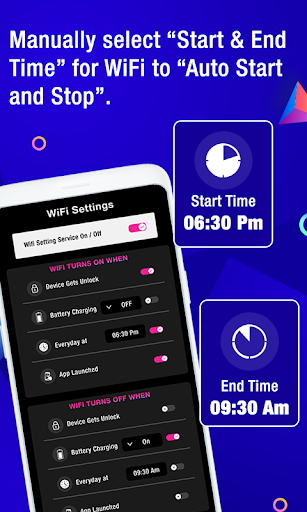 จัดการและควบคุมฟังก์ชั่น WiFi ของคุณโดยอัตโนมัติ คุณสามารถตั้งค่าสภาพเช่น - บนอุปกรณ์ปลดล็อค / ล็อคการชาร์จแบตเตอรี่เวลาแก้ไขของวัน / คืนหรือการเปิดตัวแอปใด ๆ