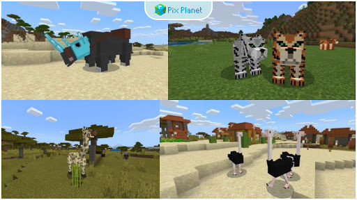 สัตว์ MODS สำหรับ Minecraft PE - เพิ่มสัตว์ใหม่จำนวนมากซึ่งส่วนใหญ่มีความก้าวร้าวและเป็นอันตราย แต่ยังคงง่ายที่จะเชื่องถ้าคุณหาวิธีการที่สัตว์บางตัวจะช่วยให้คุณขี่ได้ - คุณต้องการอานม้าสำหรับ :)