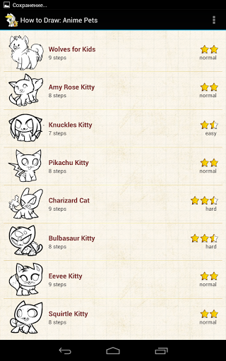 Fun and easy way to learn how to draw Anime Manga Animals! Try yourself or teach your kid.Each drawing divided in 10 to 30 steps, and its easy to follow.Have fun with this lessons at home, in school, drawing on paper chalk on asphalt - do it everywhere!★★★ 21 drawing animal lessons ★★★Learn to draw:✓ Black Kitten ✓ Halloween Kitten ✓ White Kitten ✓ Chibi Cheshire Cat ✓ Chibi Cats ✓ Kitten and Puppy ✓ Penguin ✓ Cow ✓ Pig ✓ Wolf ✓ Lion ✓ Horse ✓ Owl ✓ Fox ✓ Puppy for Kids ✓ Rottweiler For Kids ✓ Simple Puppy ✓ Wolves for Kids ✓ Amy Rose Kitty ✓ Knuckles Kitty ✓ Pikachu Kitty ✓ Charizard Cat ✓ Bulbasaur Kitty ✓ Eevee Kitty ✓ Squirtle Kitty ✓ Jigglypuff Kitty ✓ Mew Cat ✓ Sonic Kitty ✓ Tails Kitty ✓ Blaze the Cat ✓ Bulldog for Kids ✓ Shepherd for Kids ✓ Retriever for Kids ✓ Wolf for Kids ✓ Husky for Kids ✓ Pit-bull for Kids ✓ Pug for KidsLearn how to draw and improve your skill in no time with the help of our simple android application. Whether you're an art teacher, art student, or just a hobbyist artist you will find the step by step education that will give you the ability to bring those images in your mind into paper reality.Being a kid or a novice artist can sometimes get discouraging because of the lack of skills one has when they are in this artistic stage. Learning how to draw in a very simple manner is the best way to advance your skills to becoming a better artist. It doesn't matter if you are thirteen, or thirty, there is a lot of concepts you can tackle as you browse our program There is one thing that is certain, you will definitely become a better artist just by tackling the lessons you find here. So go ahead and try and draw, because no matter what you choose to do, you are guaranteed to achieve your artistic goals. Have fun everyone!