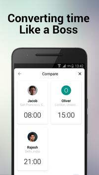 You can convert time by contacts and cities. App automatically recognize your contacts and understand theirs timezones and current time (for ones who set location in his profile). After that you can convert your time with the chosen contact or city, as well as see your time difference in past and future. Its helpful for scheduling international meetings in multiple timezones.