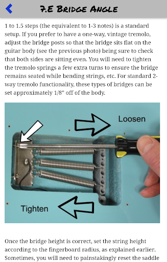 **Note: This app will teach you how to set up your guitar, but you will need some basic tools and mechanical understanding to carry out the procedures.