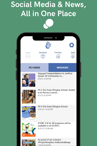 แอพนี้ออกแบบมาเป็นพิเศษสำหรับครอบครัว PS 004 Duke Ellington และพนักงานมันจะช่วยให้คุณเข้าถึงข้อมูลที่สำคัญที่สุดเกี่ยวกับโรงเรียนเช่นเกรดตารางเวลาหรือข้อมูลการติดต่อ
